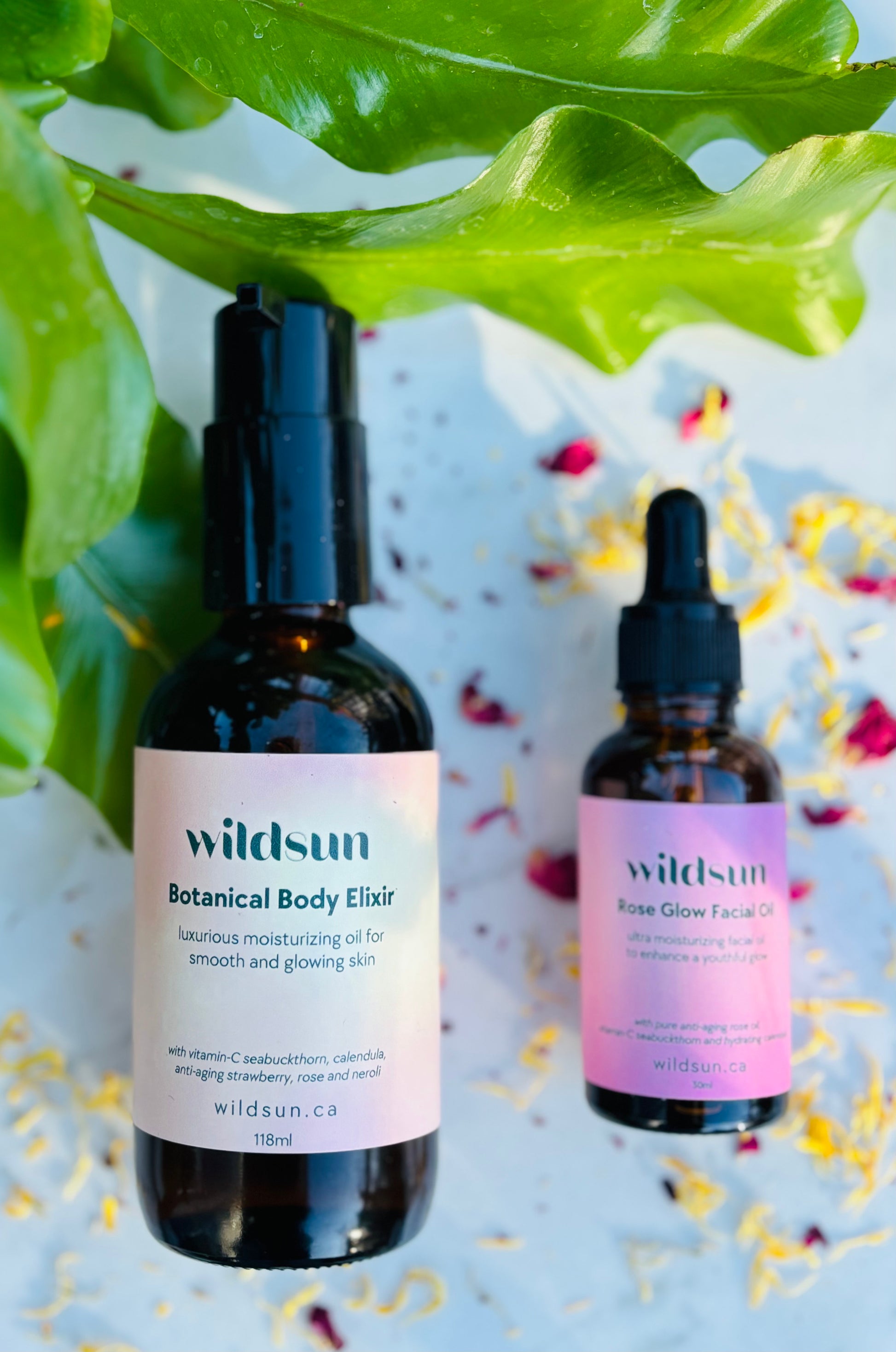 Rose Glow Facial Oil - formulated with pure rose oil, the ultimate superstar botanical for antiaging and highest frequency botanical to revitalize and hydrate our skin cells, plus vitamin C rich seabuckthorn and hydrating and healing calendula.